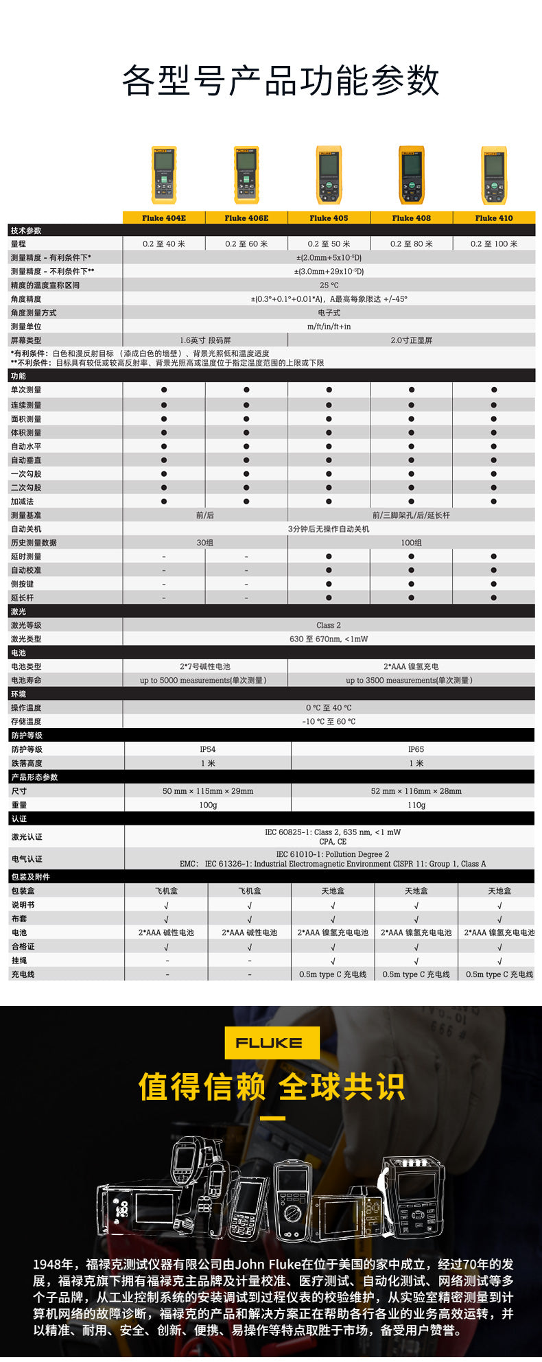 产品规格: Fluke 404E 406E 405 408 410 激光测距仪