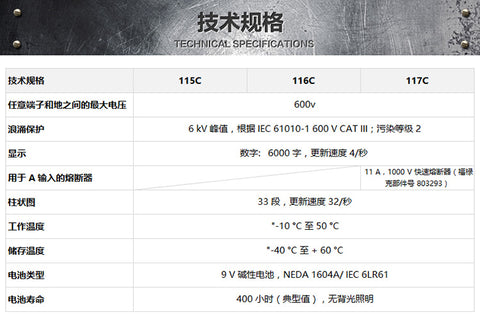 另外还有Fluke 114 电气测量万用表,带温度和微安测量功能的 Fluke 116C HVAC 万用表以及带非接触式电压测量功能的电工用 Fluke 117C真有效值万用表。